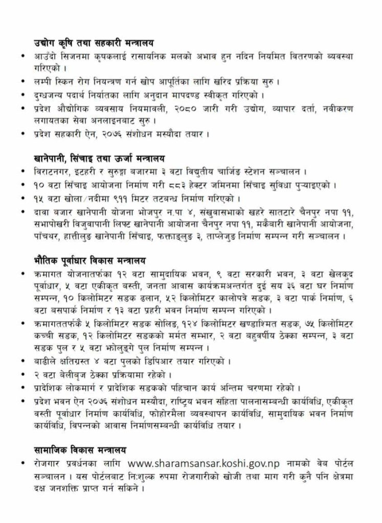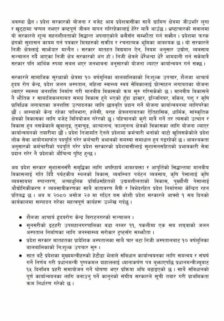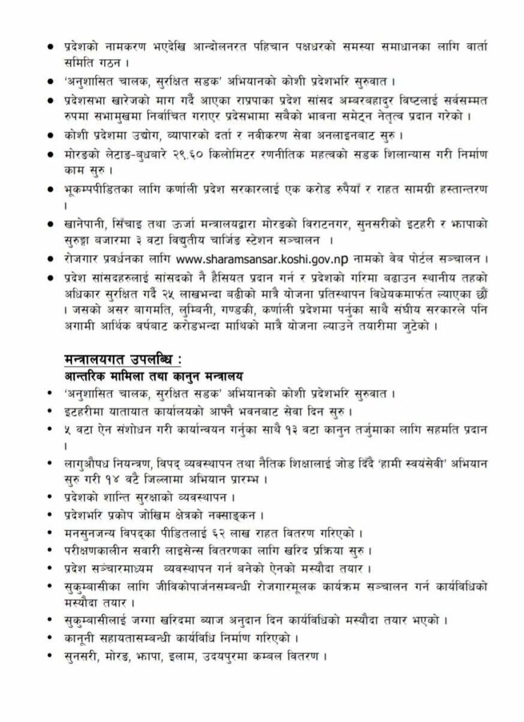 मुख्यमन्त्री कार्कीद्धारा सय दिनको उपलब्धि सार्वजनिक
