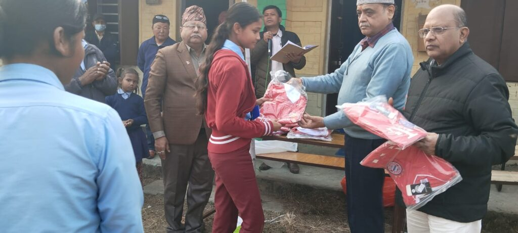 विद्यालयका छात्र÷छात्राहरुलाई खेल क्षेत्रमा अगाडी बढाउने उद्ेश्यले कटहरी–४ विनोद वोहरा, विराटनगर–१ का अशोक कुमार झुनझुनवाला, विराटनगर–७ का देवकी नन्दन अग्रवाल, विजय कुमार अग्रवाल र श्रवण कुमार अग्रवाललको सहयोगमा विद्यार्थीलाई जर्सी प्रदान गरिएको थियो । समाजसेवी वोहराले खेलक्षेत्रको विकासका लागि आफुहरुले विद्यार्थीका लागि जर्सी हस्तान्तरण गरेको वताउनुभयो ।