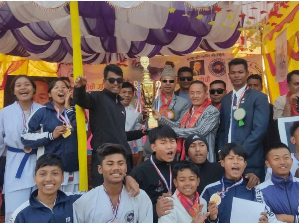 विराटनगर । पाँचौ कोशी प्रदेश स्तरीय आइटिएफ तेक्वान्दो प्रतियोगिताकोको उपाधि झापाले जितेको छ । झापाले ३ स्वर्ण, ४ कास्य र ३ रजत पदक ल्याएर उपाधि जितेको हो ।