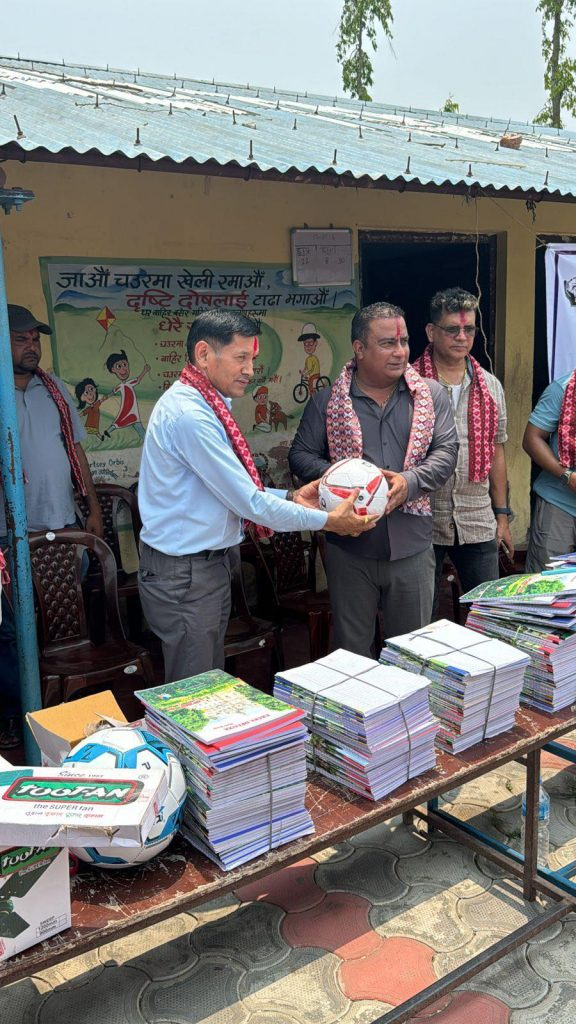 ‘सामुदायिक विद्यालयमा अध्ययन गर्ने विपन्न समुदायका विद्यार्थीहरूलाई शैक्षिक सामग्री दिन पाउँदा उनीहरूको हौसला बढ्छ जस्तो मलाई लाग्छ,’ उहाले भन्नुभयो ‘ह्वाइट बोर्ड दिँदा पठन–पाठनमा अझ सहजता थप्छ । खेलकुदतर्फ लाग्न प्रेरित गर्नकै लागि यसपालि फुटबल पनि वितरण गरेका छौं ।’