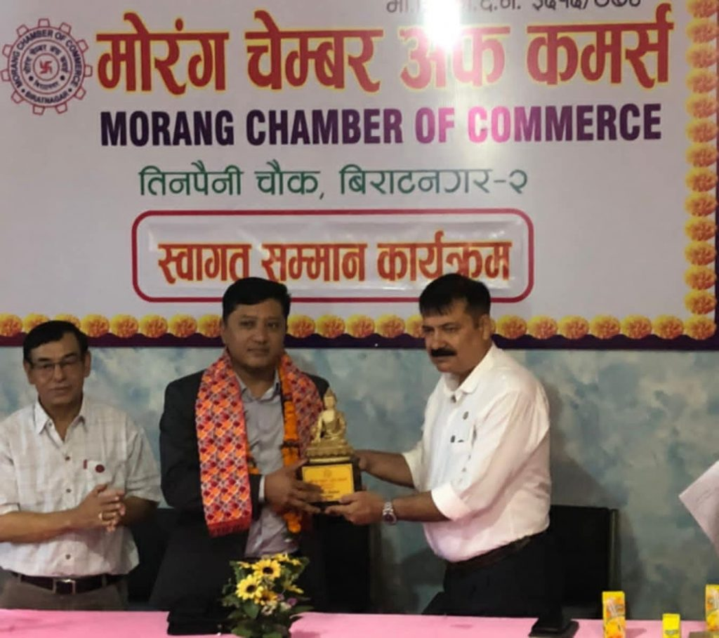 मोरङ चेम्बर अफ कमर्सको आयोजनामा बिराटनगरमा शुभकामना तथा स्वागत सम्मानको कार्यक्रम सम्पन्न भएको छ । मोरङ चेम्बरका अध्यक्ष यादब पोखरेलको सभापतित्व कार्यक्रम सम्पन्न भएको हो ।