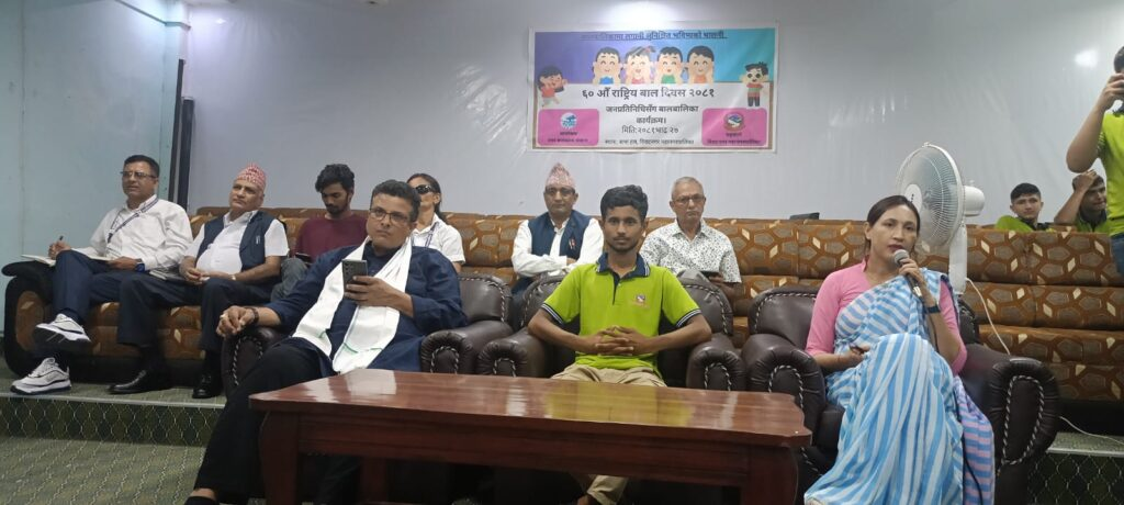 विराटनगर ÷ ६० औं बालदिवसका अवसरमा विराटनगर महानगरपालिकासँगको सहकार्यमा नगर बालक्लब सञ्जालले ‘जनप्रतिनिधिसँग बालबालिका’ आयोजना गरेको छ ।