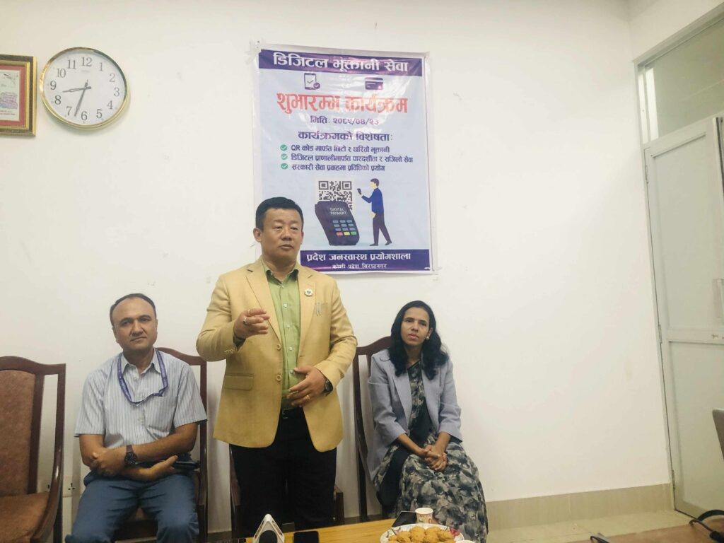 प्रदेश जनस्वास्थ्य प्रयोगशालाबाट प्रदेशस्थित सरकारी कार्यालयमा पहिलो पटक डिजिटल भुक्तानी (क्यूआर) सेवा शुभारम्भ भएको हो ।