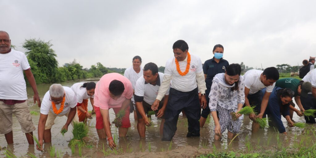 विराटनगर ÷ २० औं राष्ट्रिय धान दिवसका अवसरमा विराटनगर महानगरपालिकाले विराटनगर–१२ स्थित बखरीमा सामूहिक धान रोपाइँ आयोजना गरेको छ ।